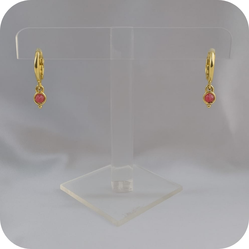 Argolinha de Click com Pingente Pedra Rosa